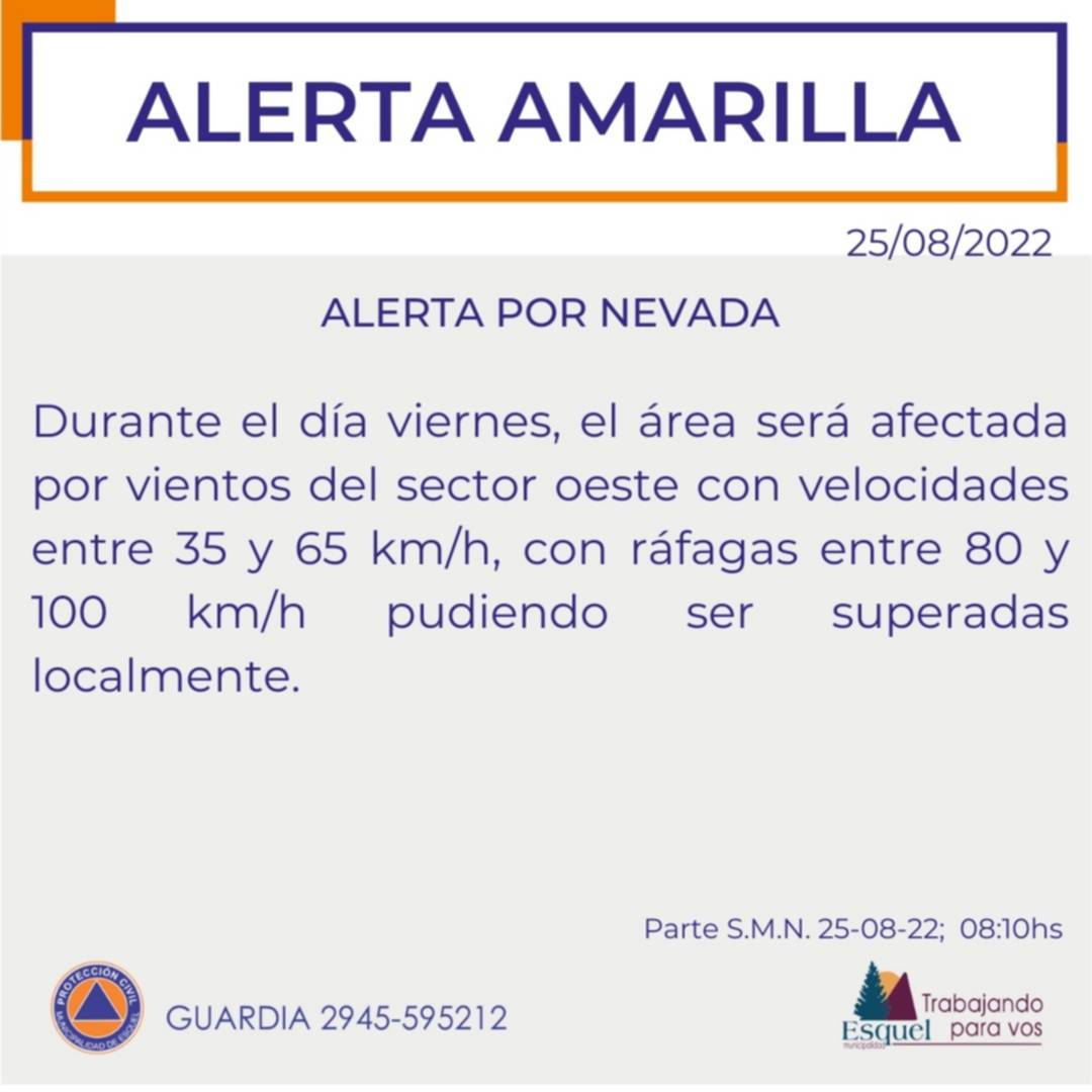 El Servicio Meteorológico Nacional dio a conocer la vigencia de un alerta amarilla por nieve para este viernes por la tarde en Esquel y la región.