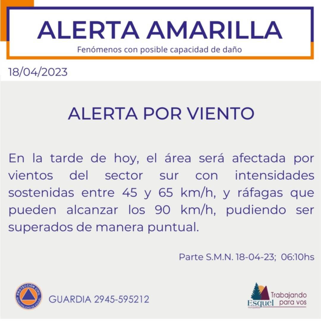 La Subsecretaría de Protección Civil de Chubut anunció un alerta amarilla en la ciudad por fuertes vientos vigentes durante toda la jornada en gran parte de la cordillera chubutense.