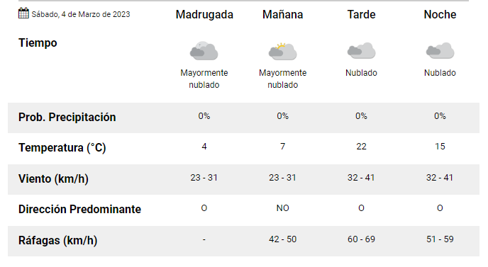 El Servicio Meteorológico Nacional anuncia que habrá algo de viento en horas de la tarde.