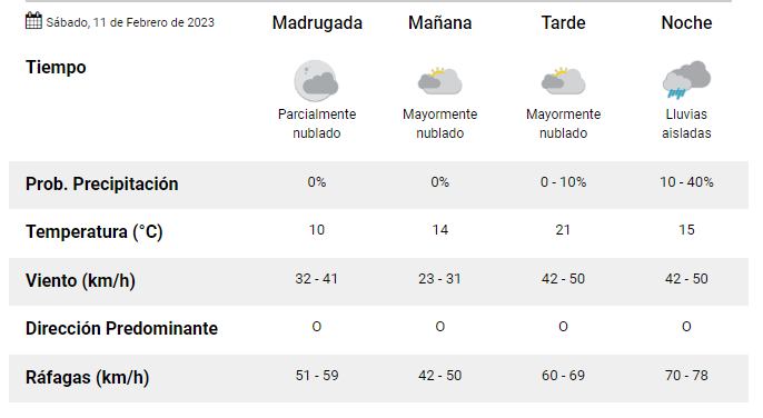 Según la información oficial que brinda el sitio web del Servicio Meteorológico Nacional, este día sábado en la ciudad de Esquel, tendremos una temperatura máxima de 21°C.