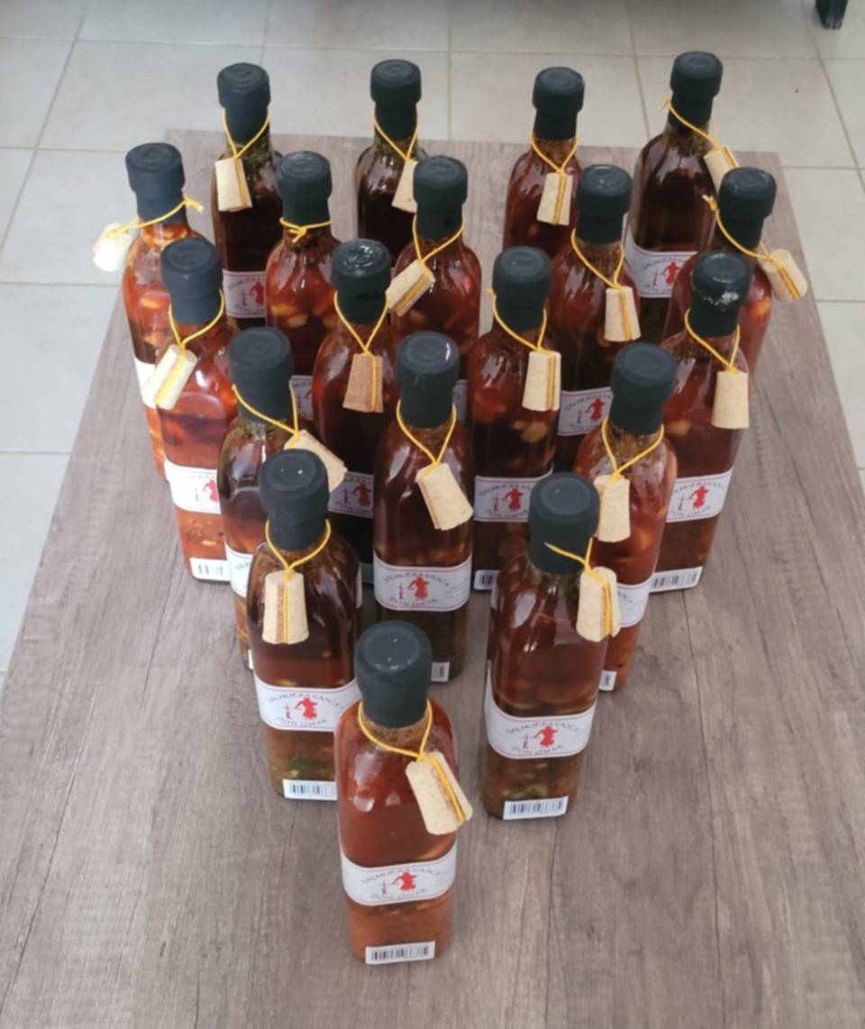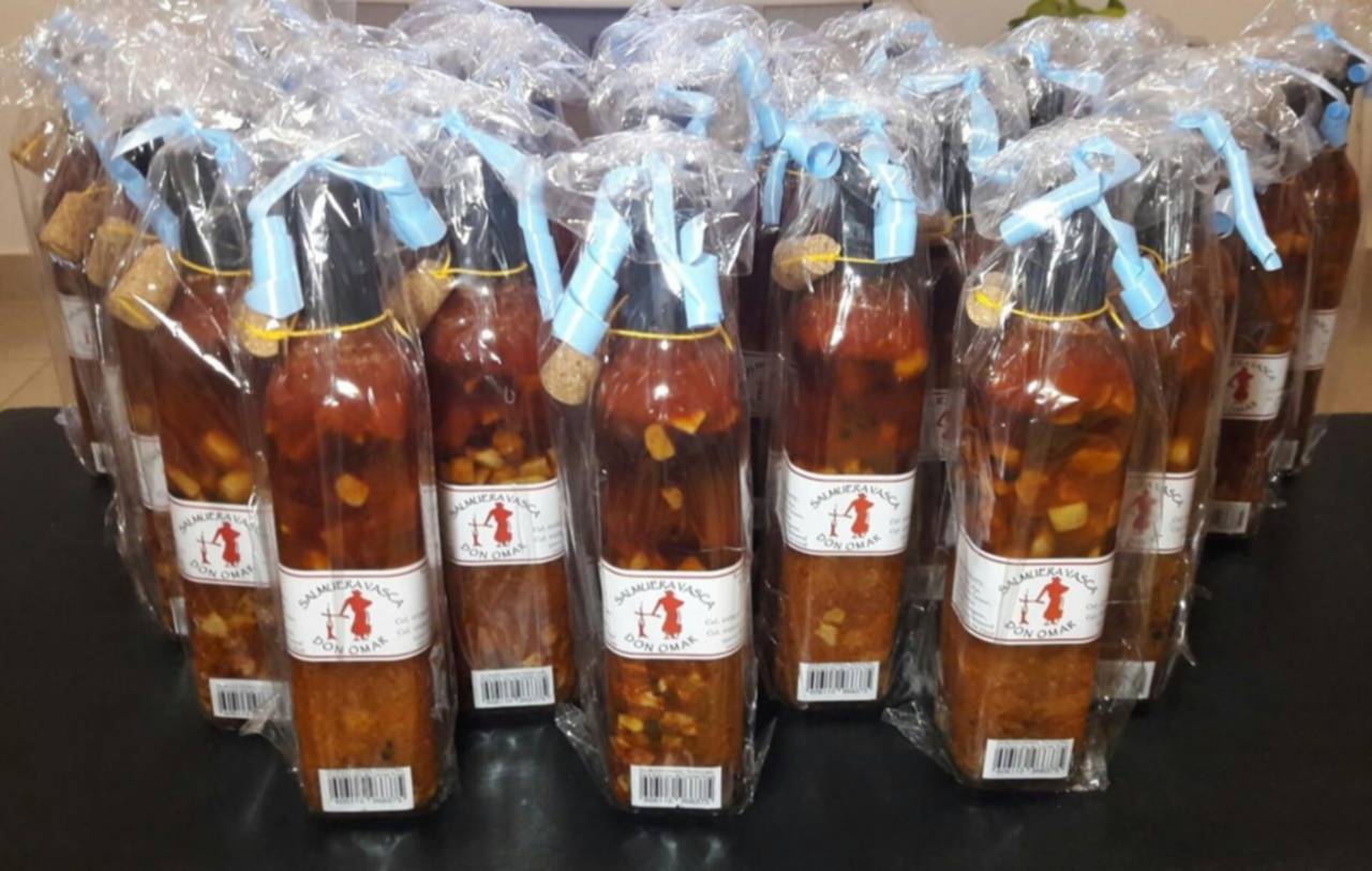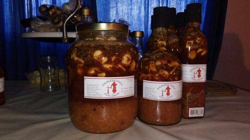 Ambos, llevan adelante un emprendimiento a pulmón, que hoy les da una gran ayuda para tener un ingreso económico. Se trata de la fabricación de salmuera vasca; un producto que lleva el nombre de uno de los entrevistados de hoy, «Don Omar».
