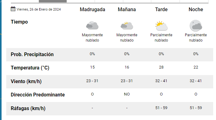 Se anuncia una jornada con cielo parcialmente nublado, algo de viento en horas de la tarde y sin probabilidades de precipitaciones.
