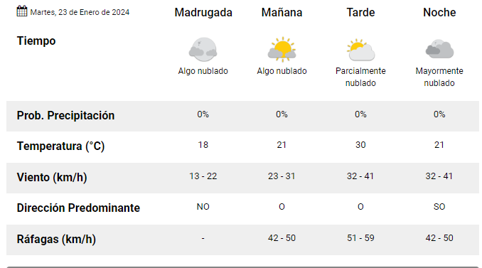 Según la información oficial que brinda la página web del Servicio Meteorológico Nacional, para este día martes en la localidad de Esquel, se espera una temperatura máxima de 30º C.
