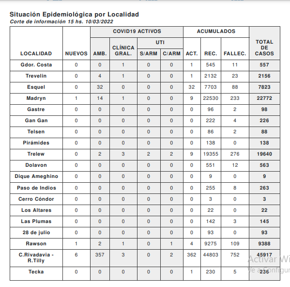 El Ministerio de Salud de la provincia del Chubut, reportó este viernes un total de 11 casos nuevos de COVID.