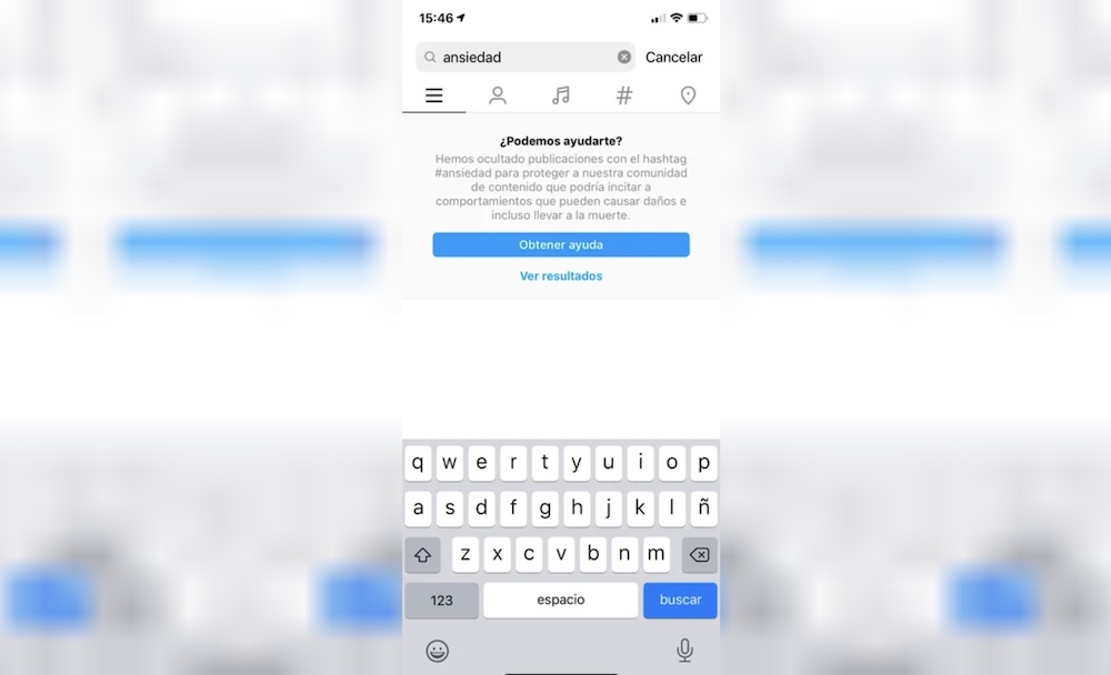 En ese momento, Valeria decidió buscar en el buscador de Instagram la palabra “ansiedad”, «para ver si la encontraba más fácil y me salió el mensaje que les muestro a continuación (ver foto)», sostuvo.