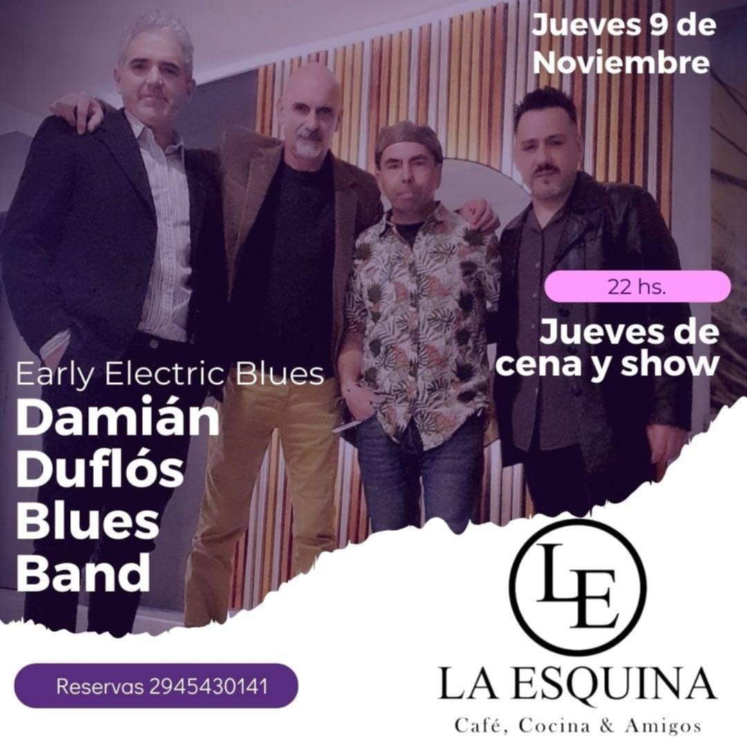 Este jueves en el restaurant ubicado en 25 de Mayo y Rivadavia «La Esquina» desde las 22:00 horas, se presentará Damian Duflós Blues Band quienes proponen recorrer un repertorio de los años gloriosos del Blues Eléctrico de Chicago de los años 50′.
