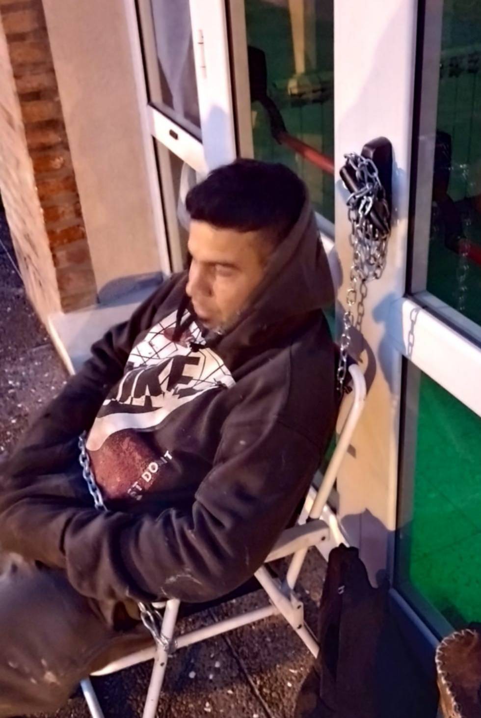El hecho inició este lunes alrededor de las 06:50 horas cuando una vecina alertó al Centro de Monitoreo sobre un hombre que se encontraba encadenado al Honorable Concejo Deliberante de Esquel en reclamo de un terreno.