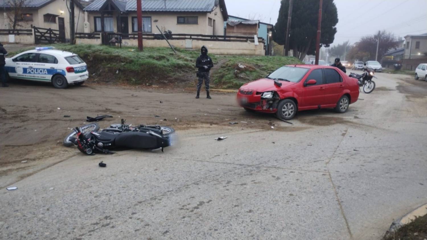 Según indicaron, los vehículos involucrados son un Fiat Siena y una moto en la que circulaba un joven, que sufrió un fuerte impacto contra el suelo y fue derivado al Hospital Zonal de Esquel.