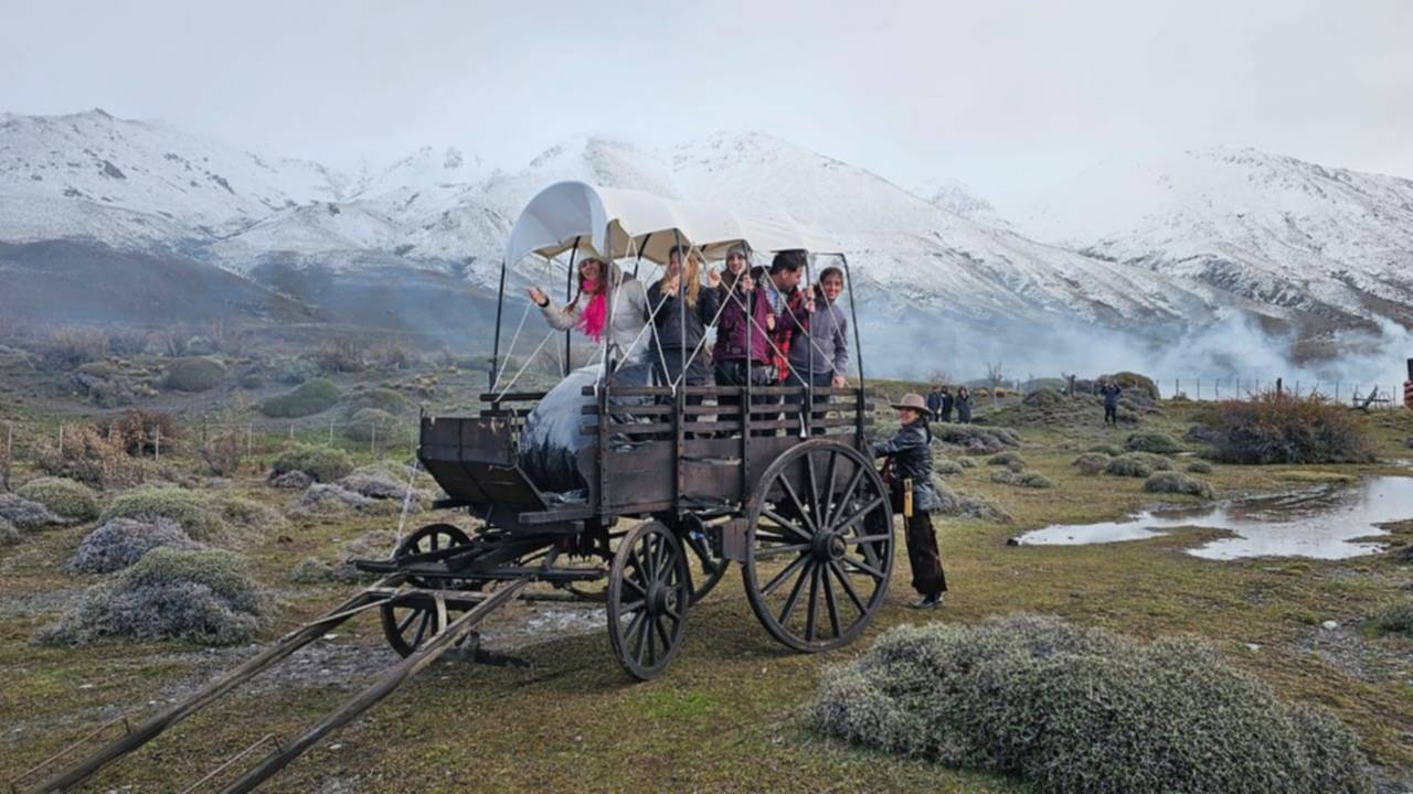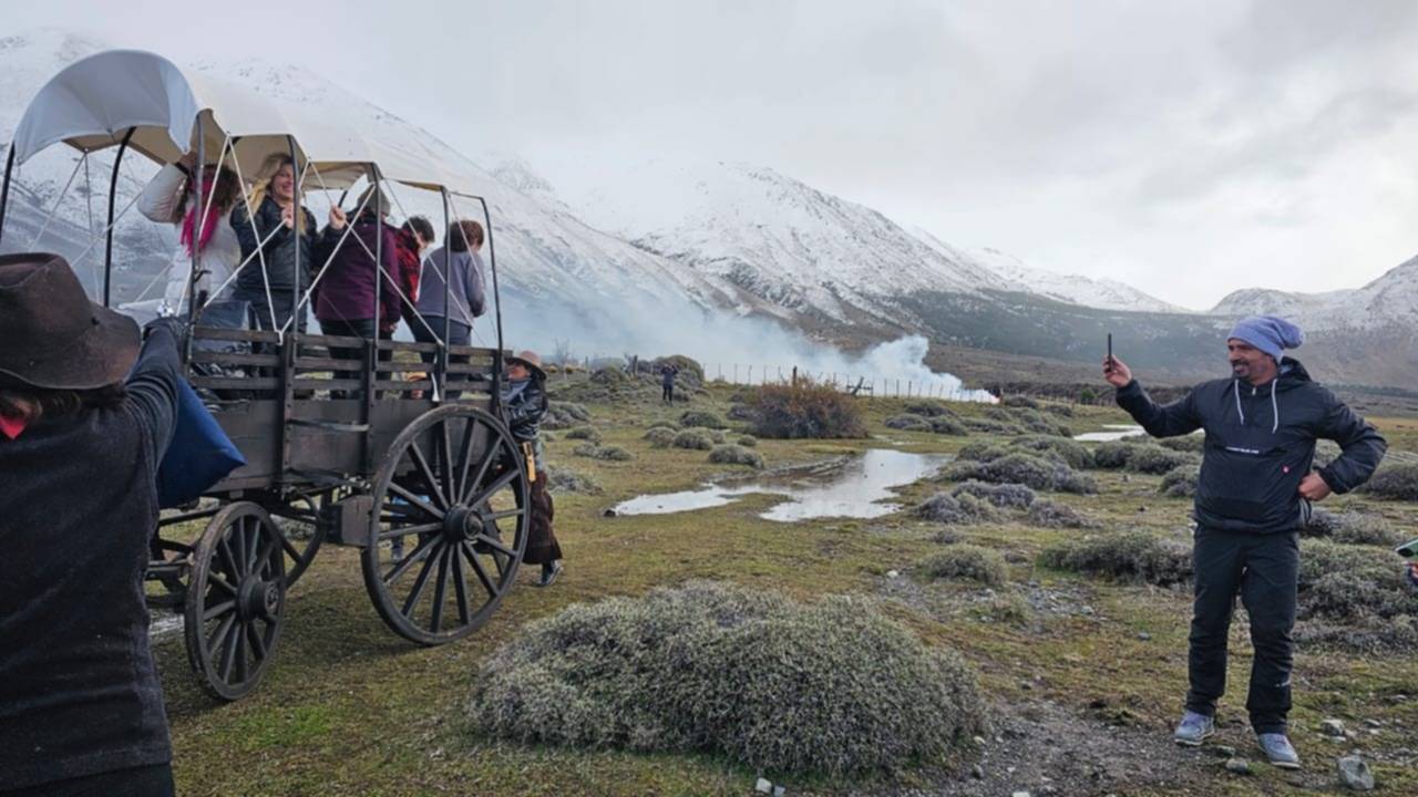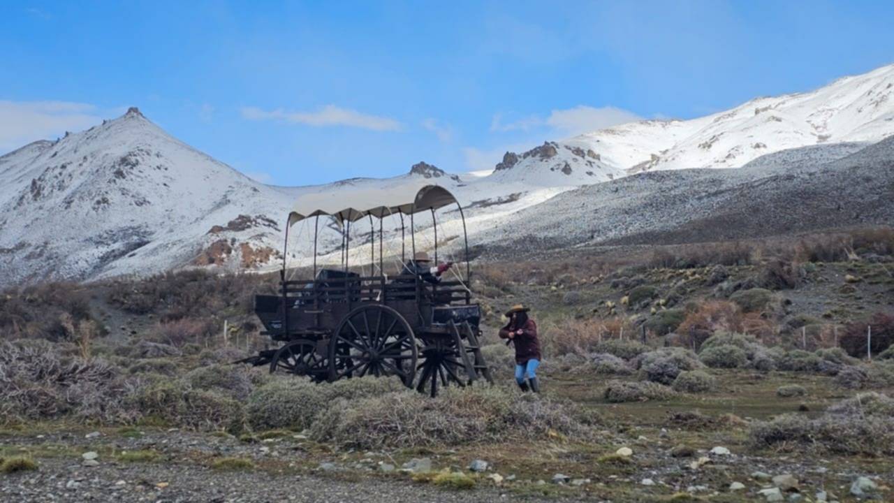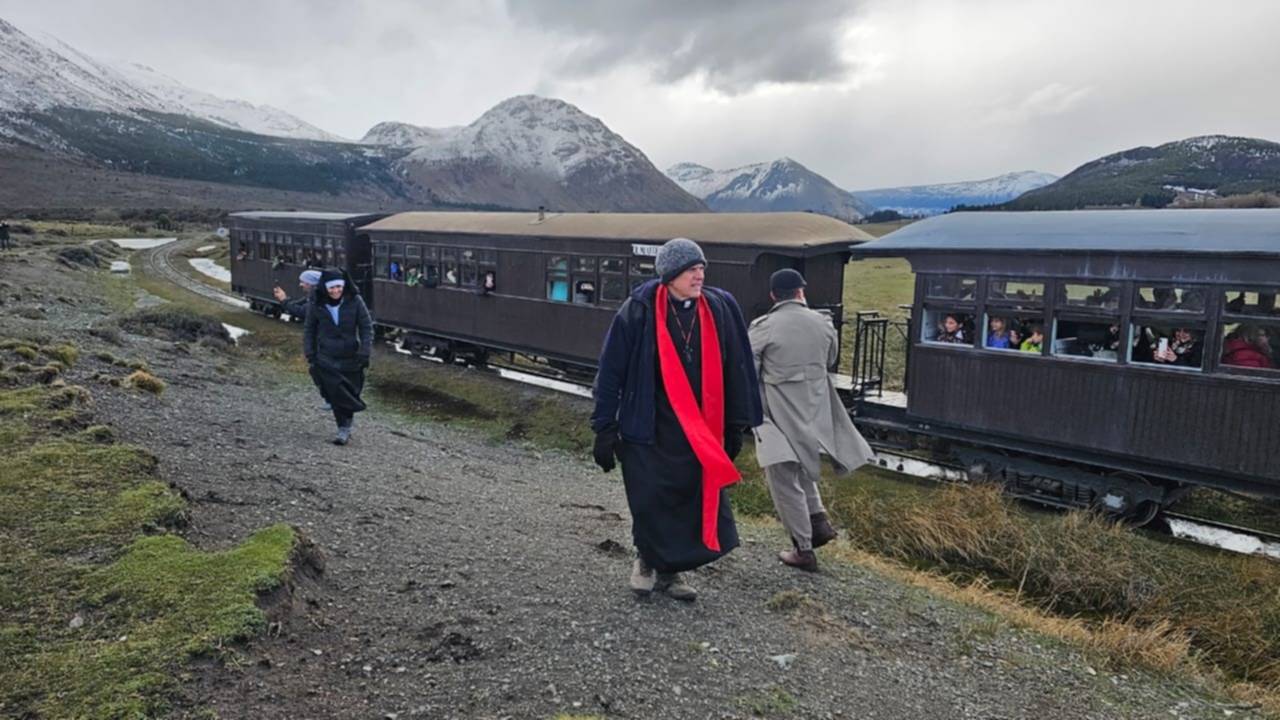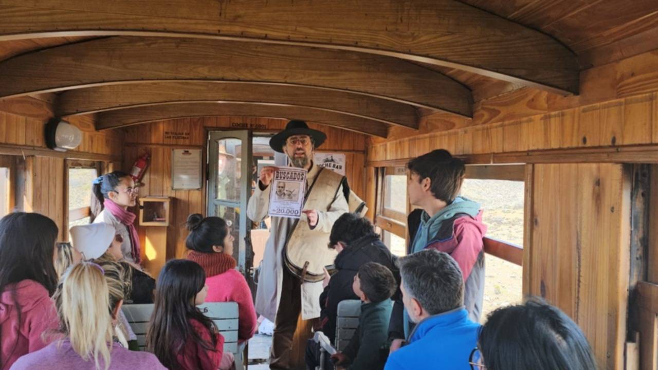 Los actores y los pasajeros vivieron un momento inolvidable en las cercanías de Esquel, cuando por sorpresa un grupo de «forajidos» armados detuvieron La Trochita.