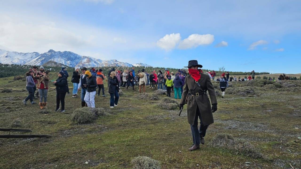 El Viejo Expreso Patagónico La Trochita volvió a ser escenario de un importante cuadro teatral donde Jack Bradford, Coyote Kid y sus bandoleros simulan un asalto al tren durante la excursión tradicional que realiza el tren en su recorrido hacia Nahuelpan.