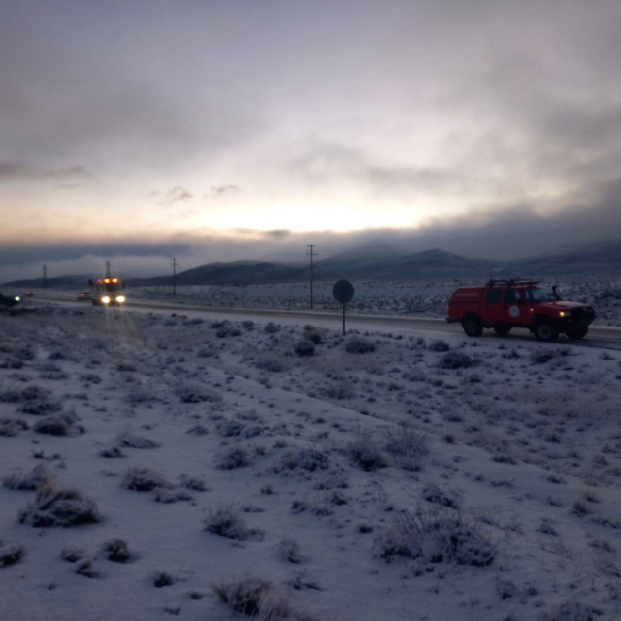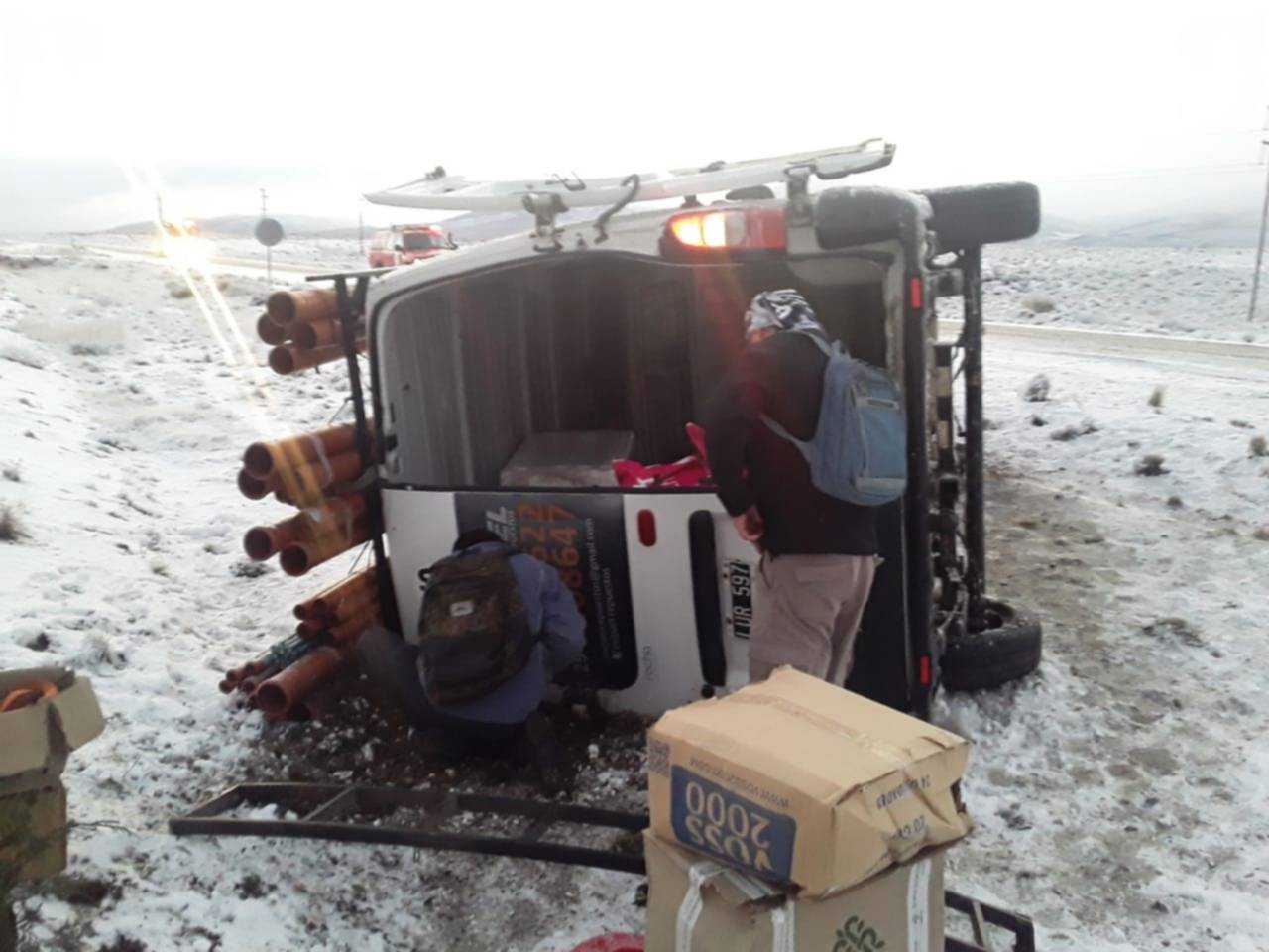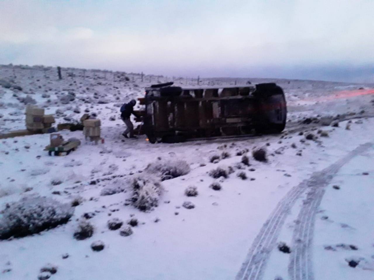 Ocurrió este martes en el ingreso a la Estancia «La Blanche». El accidente se produjo por fuertes vientos y presencia de hielo y nieve en la calzada.